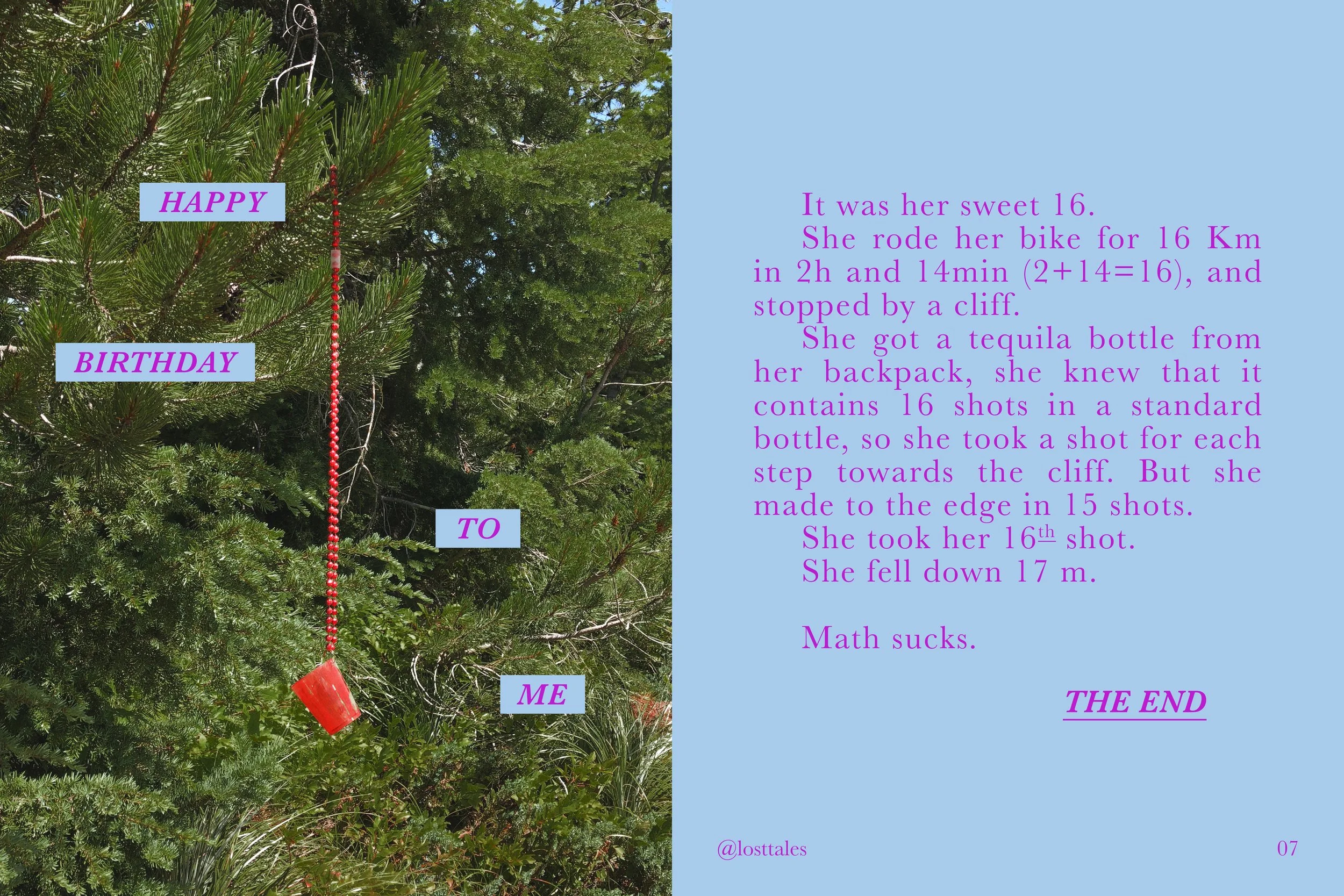 What kind of stories are hidden behind objects tossed out and forgotten in the streets? Lost Tales are short and dry fictional stories about these forever lost objects. The intention is that this will become an Instagram profile one day, so this should be thought as an IG carousel where you first see the cover and then the story.